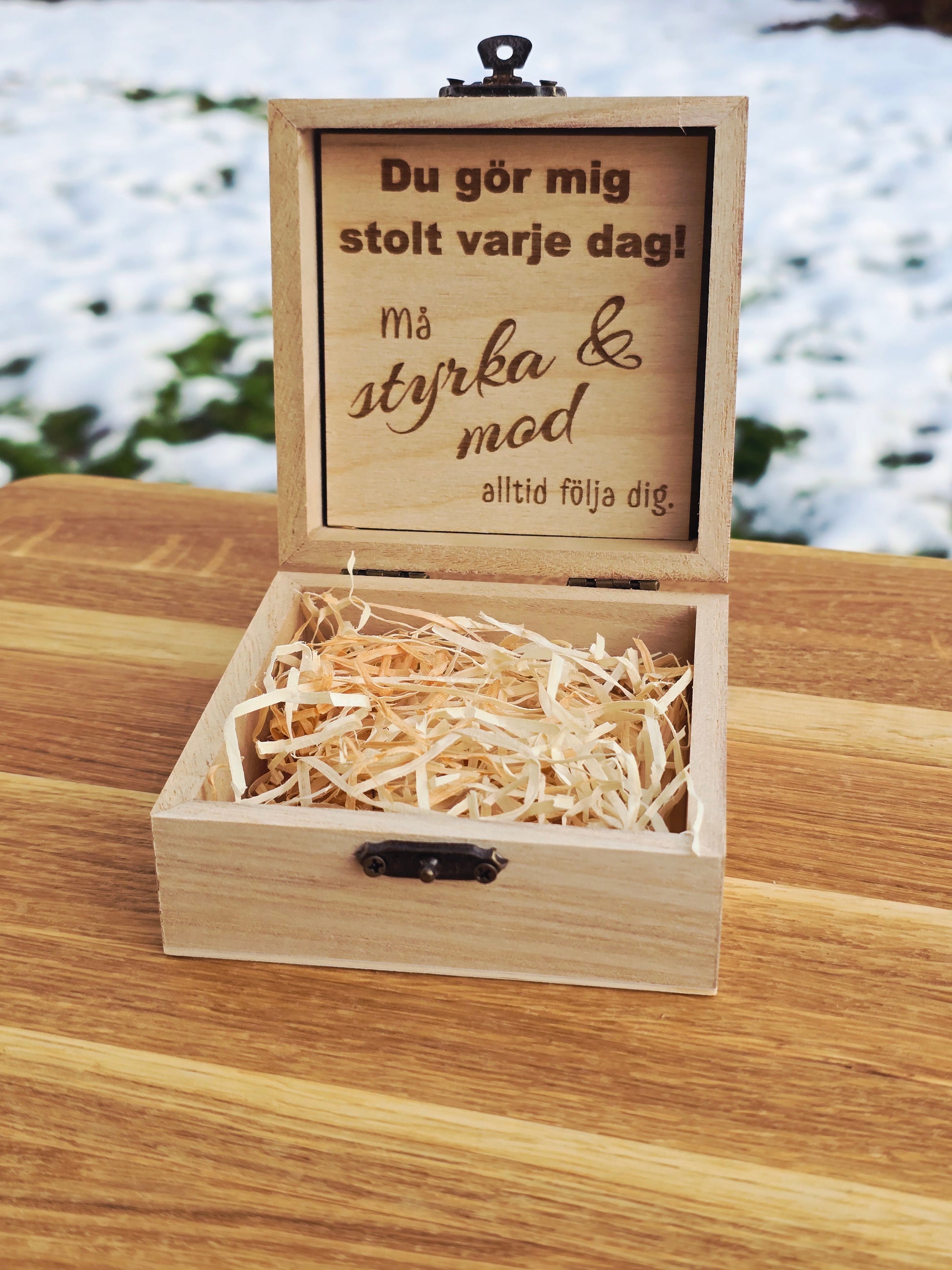 This wooden gift box is ideal for presenting jewelry, small personal items, or symbolic objects. It is well suited for occasions such as birthdays, weddings, anniversaries, or as a thoughtful personal gift with a lasting message.